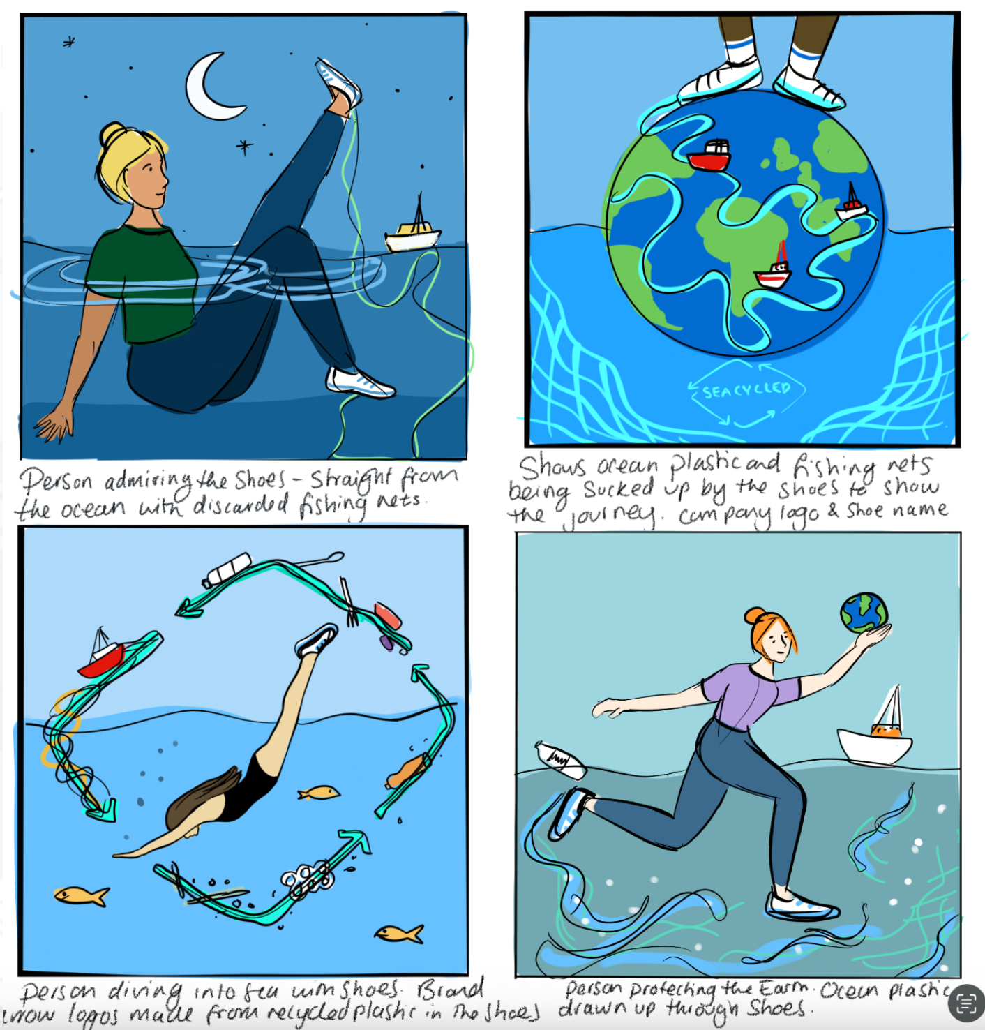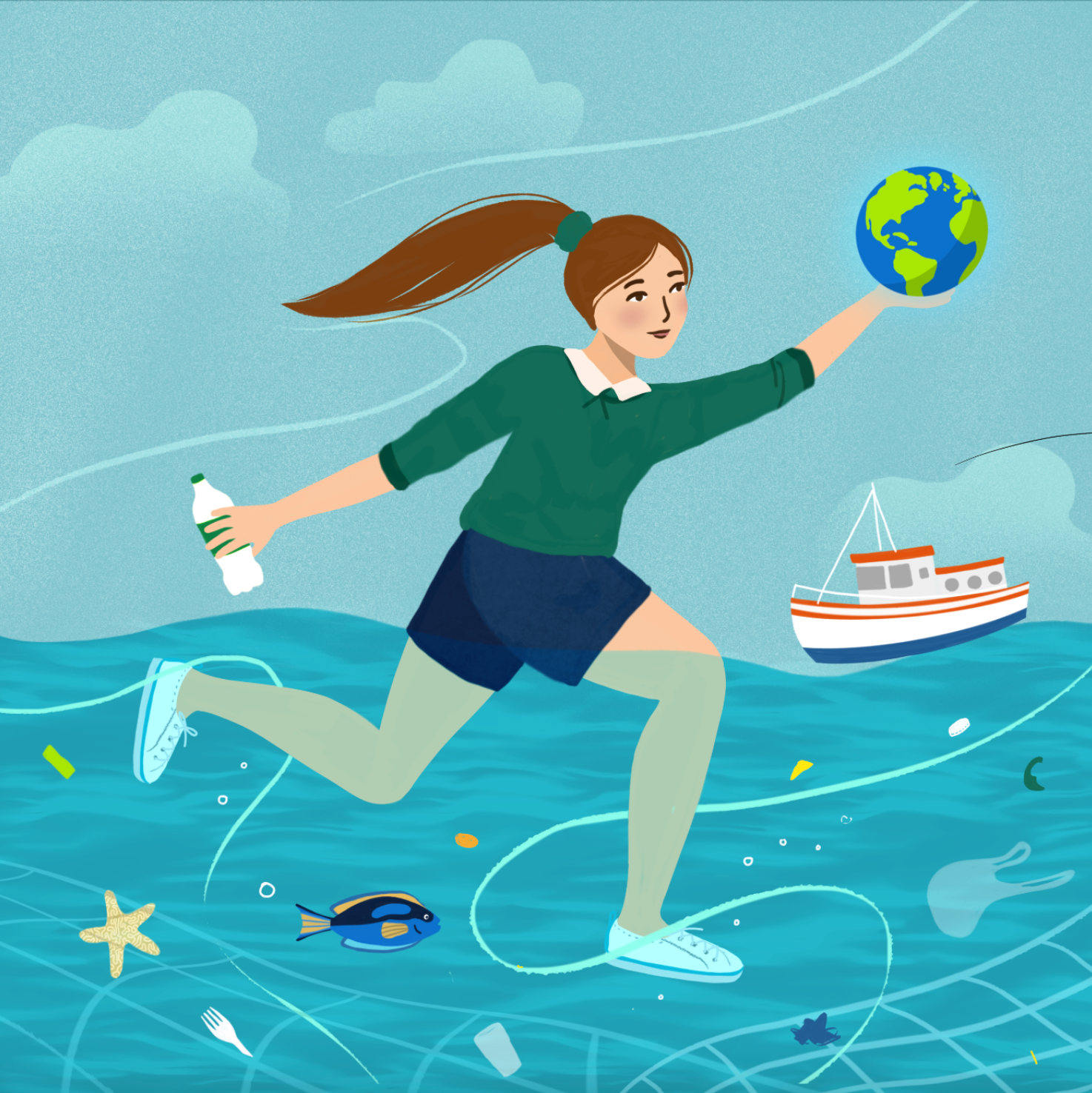 American footwear company, Sperry, approached me with a brief about their new SeaCycled range of footwear they wanted to promote. The deliverable was an illustration to feature on their website and socials about the new release and the company's commitment to conservation,